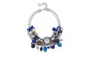 NOUR Faceted Glass Bead Long Necklace in 2 Shades of Blue