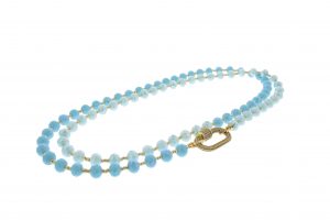 Elevate your style with our versatile faceted glass bead long necklace, designed to be worn in multiple ways to suit your mood and outfit. Crafted with exquisite attention to detail, this necklace features faceted glass beads in two shades of Blue that shimmer and sparkle with every movement.