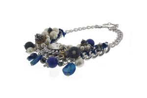 NOUR Faceted Glass Bead Long Necklace in 2 Shades of Blue is Silver Tone