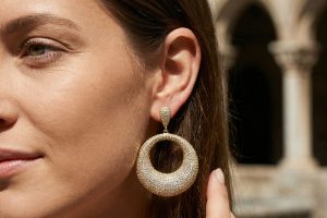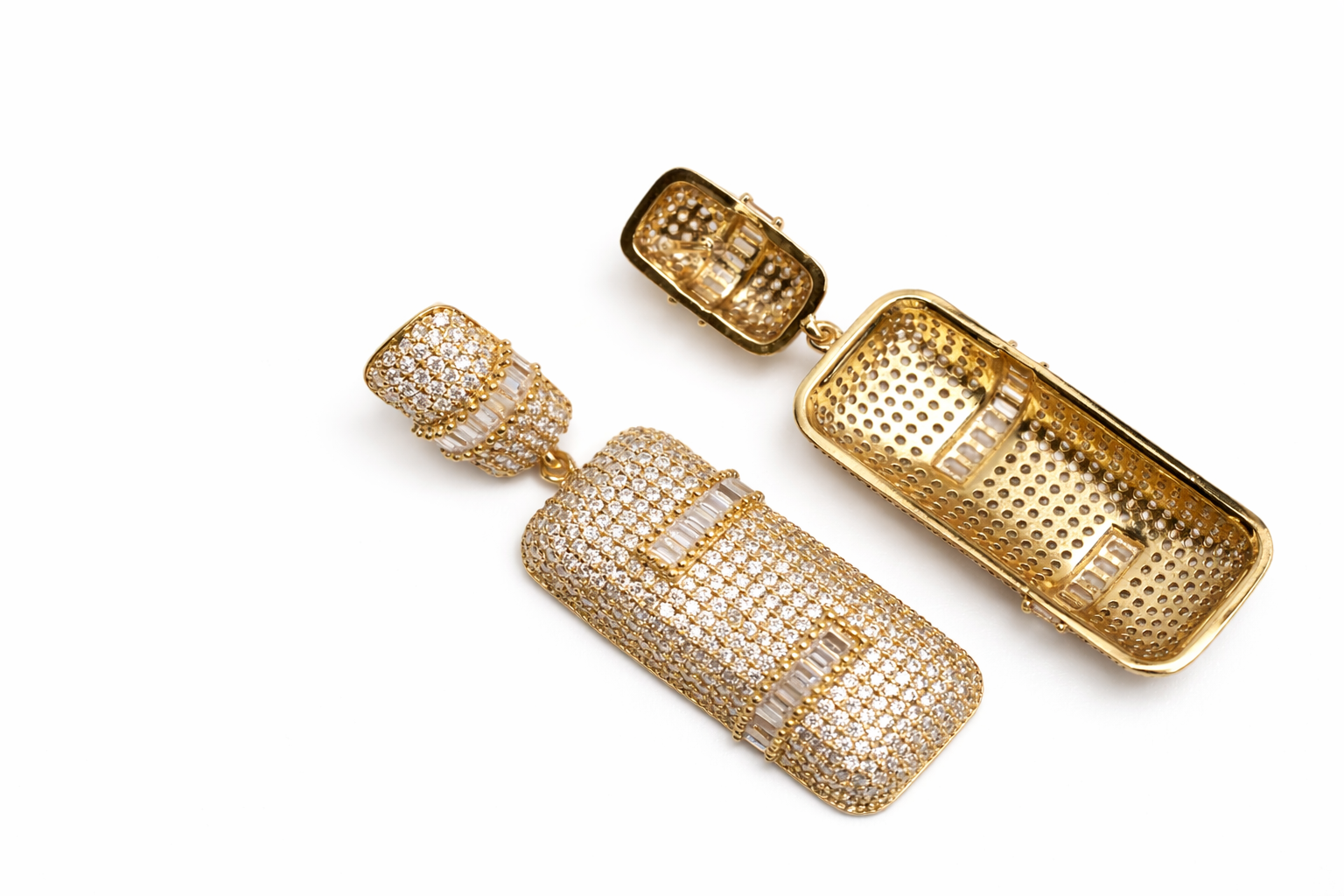 Perfect for evening wear, parties, or special occasions, these earrings are made to stand out. They combine contemporary glamour with timeless elegance, making them an ideal choice for anyone looking to elevate their look with a luxurious, eye-catching accessory.