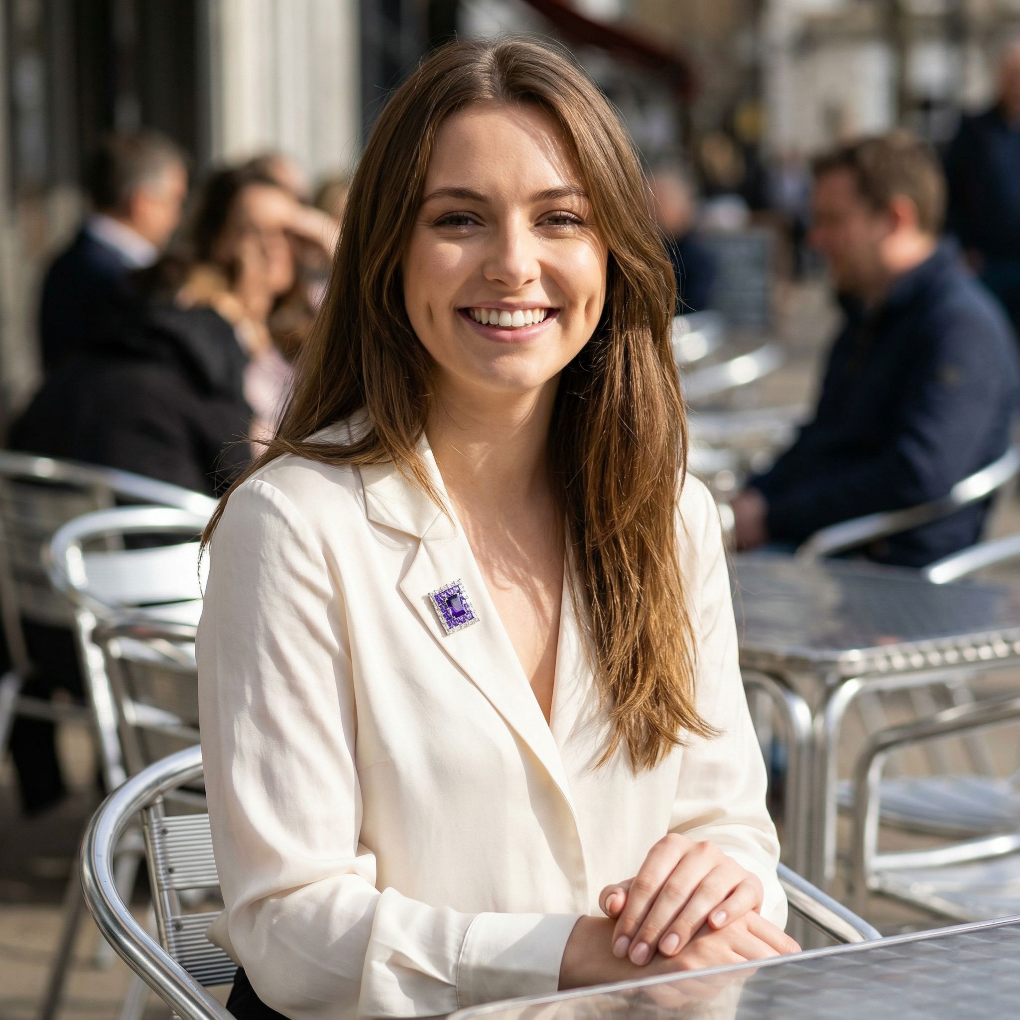 Perfect for adding a pop of colour to tailored blazers, dresses, or eveningwear, this brooch blends contemporary geometry with classic glamour—ideal for both day sophistication and evening sparkle.