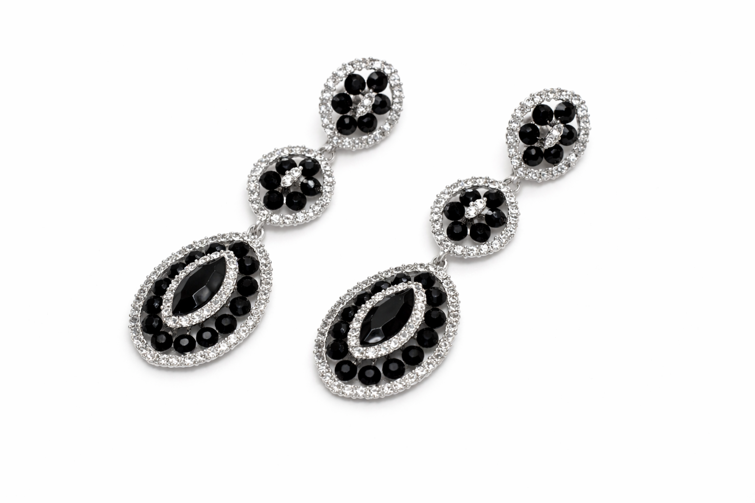 Darrings Earrings showcase a sophisticated, vintage-inspired design with striking contrast and sparkle.
