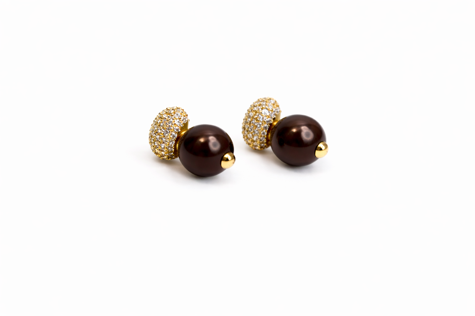 They feature a lustrous brown pearl bead as the central element, with a smooth, glossy finish that reflects light beautifully and gives a warm, sophisticated glow. The bead is perfectly rounded, creating a classic silhouette with a contemporary twist.