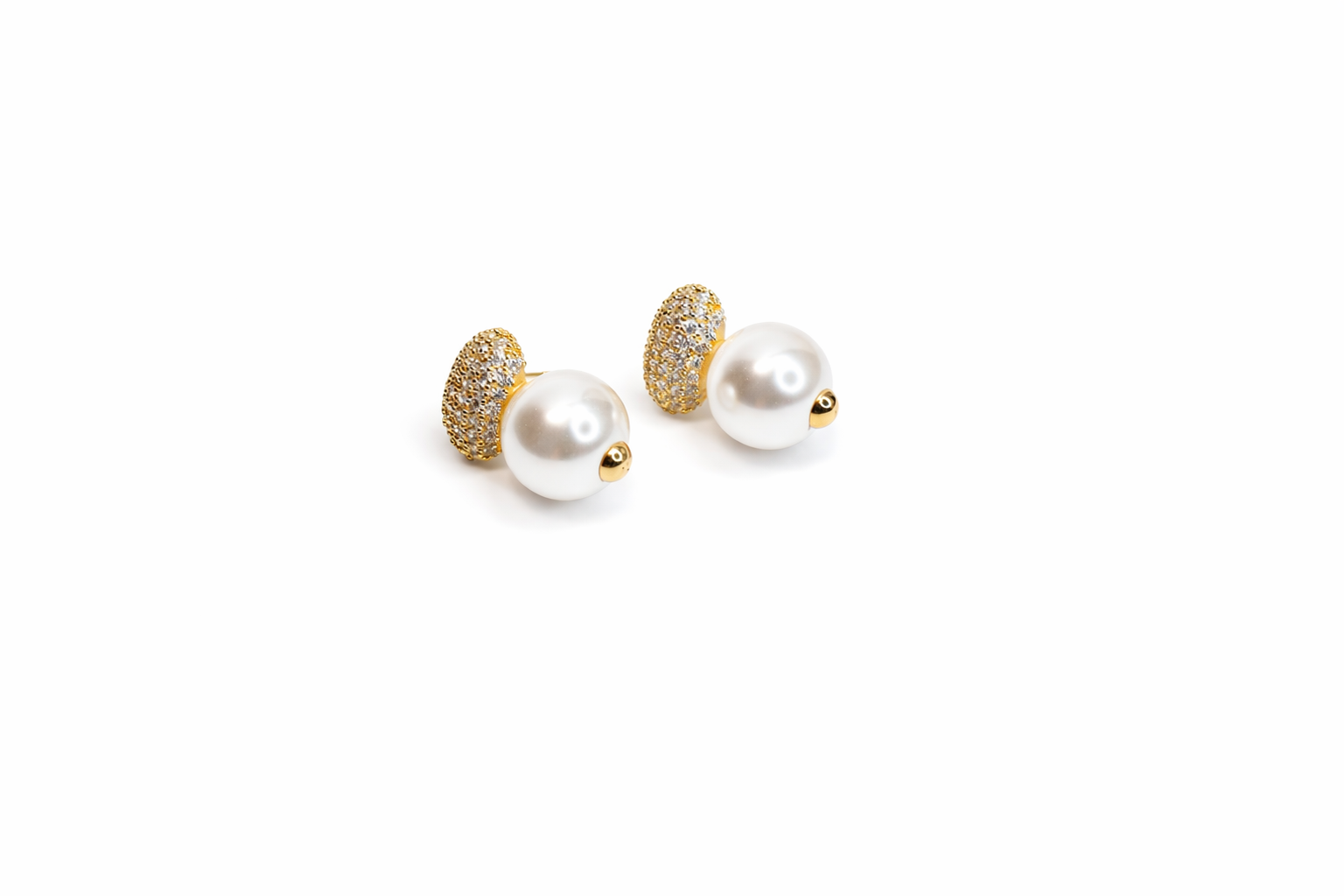 These NOUR earrings are a refined pair of pearl stud earrings on a post fitting, designed with a classic yet contemporary look.