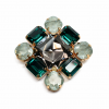 At the centre sits a faceted deep green gemstone, rich in colour and brilliance, acting as the focal point of the piece. The combination of the dark green stone with the cool silver-tone metal creates a refined and sophisticated contrast.