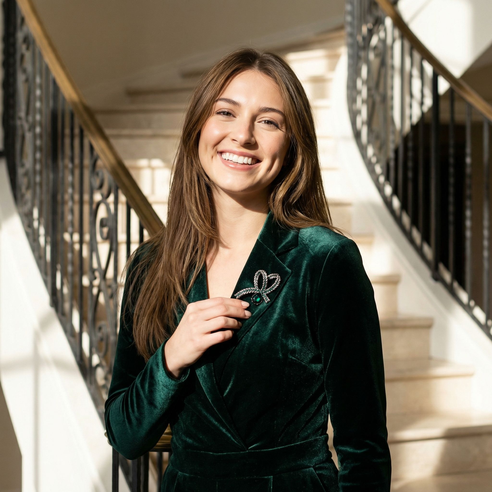 A graceful and versatile accessory—perfect for adding a touch of understated elegance to jackets, blouses, or evening wear.
