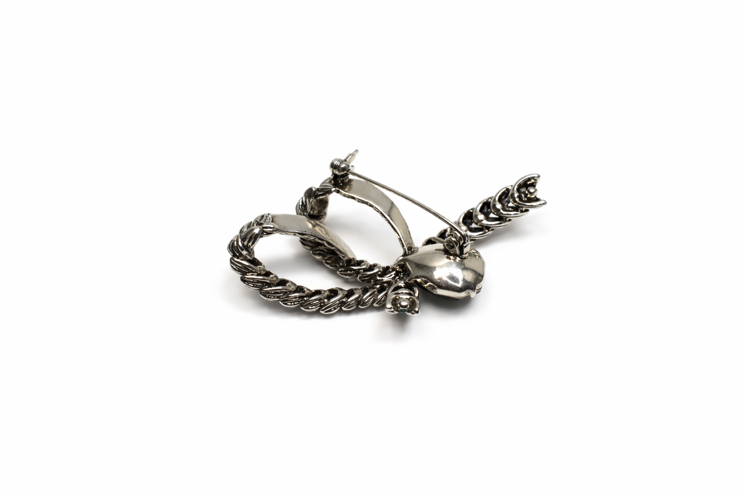 This brooch features an elegant and sculptural ribbon-inspired design, crafted in a polished silver-tone finish with intricate detailing.