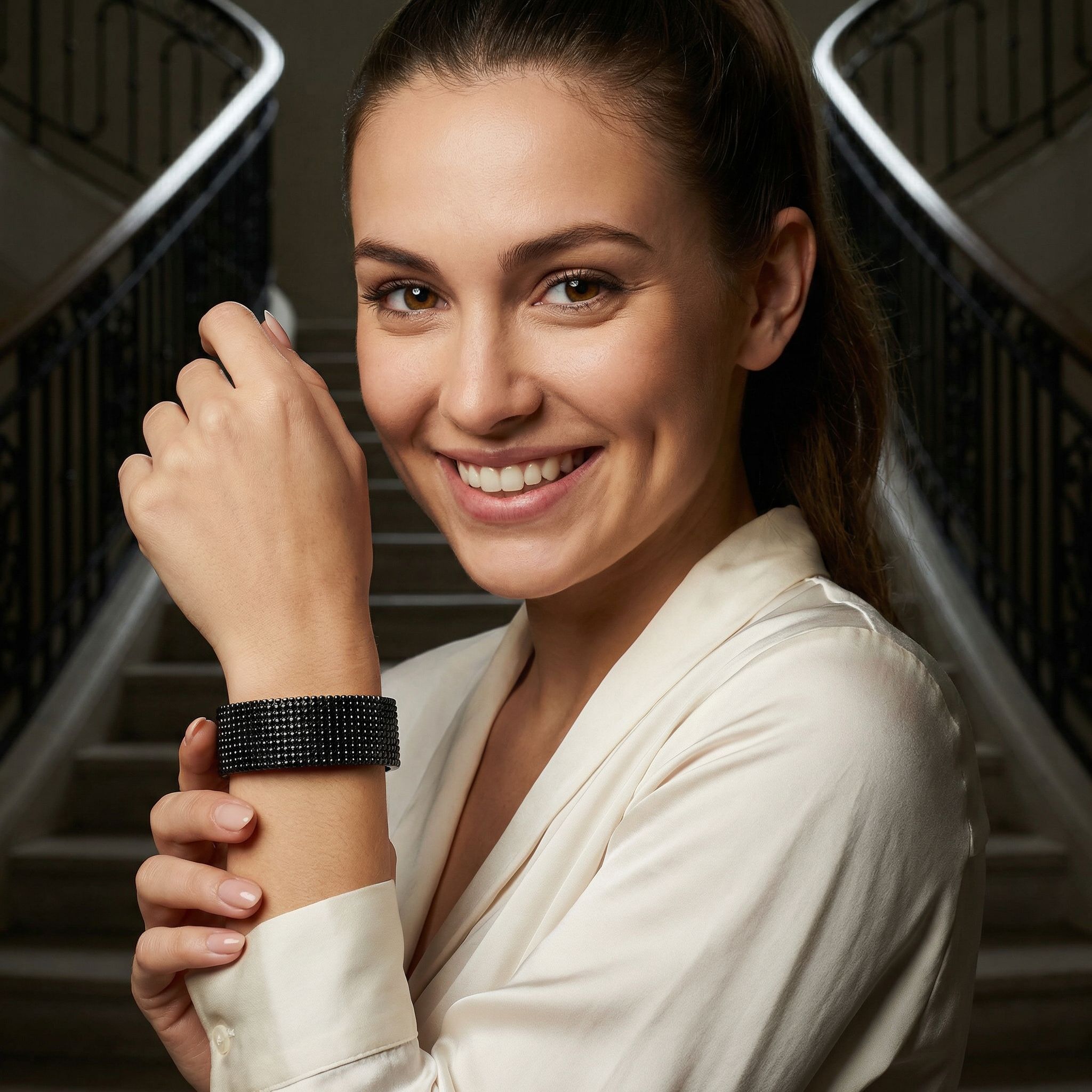 Chic, contemporary, and effortlessly refined, this bracelet is a statement accessory for those who appreciate understated glamour with a modern twist.