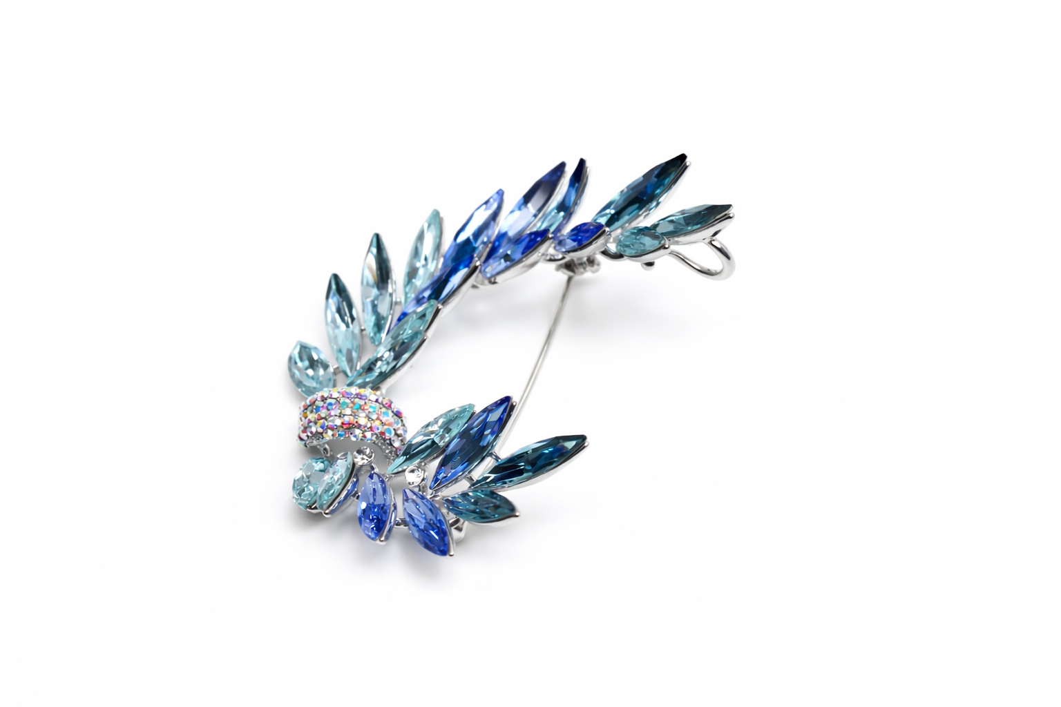 A refined yet eye-catching piece—perfect for adding a touch of colour and sophistication to blazers, dresses, or occasion wear.